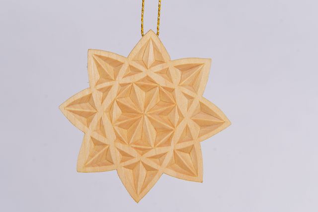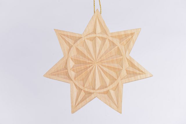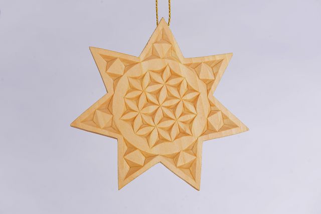 Ø ca. 16,5 cm einseitig beschnitzt. Hl. Familie mit Dekupiersäge gearbeitet. |